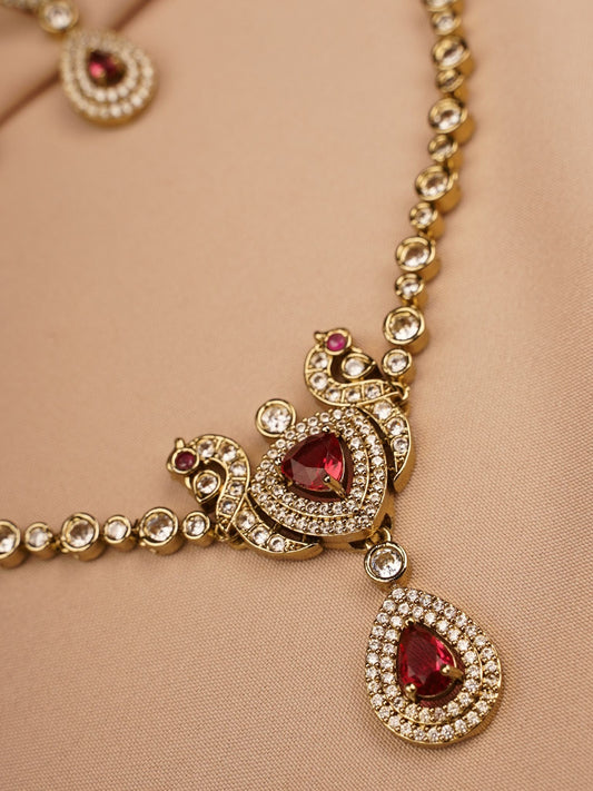 Ruby & Kundan Stone Gold Plated Necklace Set