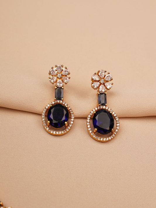 Royal Sapphire Blue Stone Necklace Set with Diamond Finish