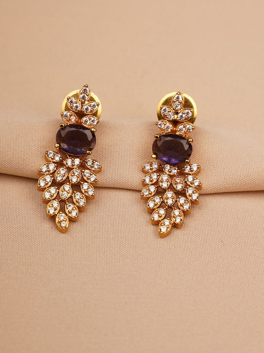 Gold-Toned Floral Stud Earrings with Ruby Center & CZ Detailing