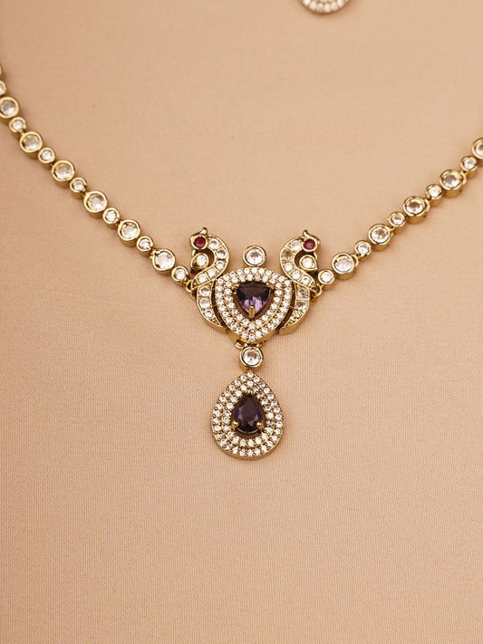 Royal Plum Teardrop Kundan Necklace & Earrings Set
