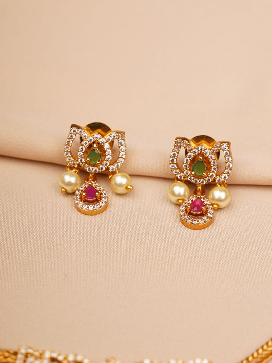 Luxurious White Stone & Gold Necklace Set with Earrings