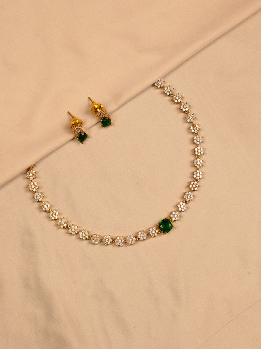 Elegant Floral CZ Necklace Set with Emerald Green Stones