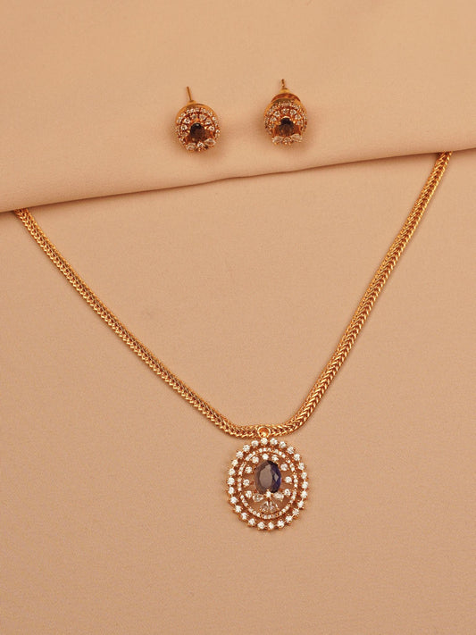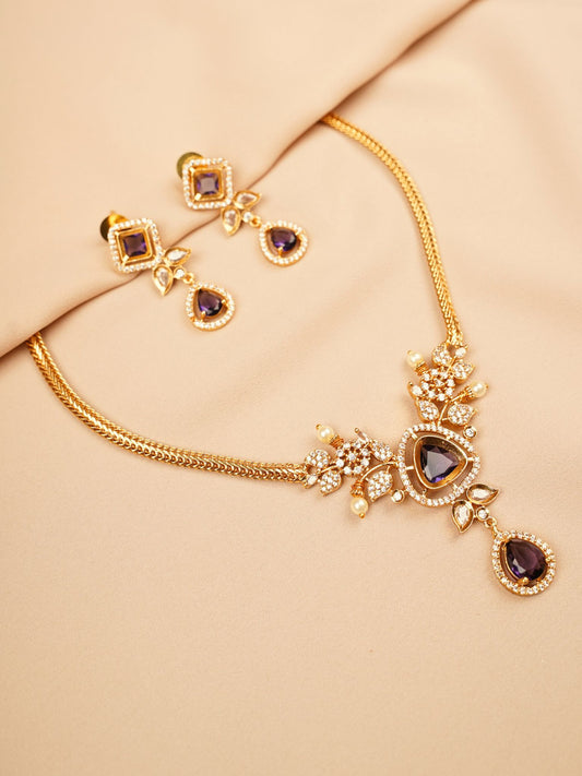 Royal Sapphire Blue Stone Necklace Set with Diamond Finish
