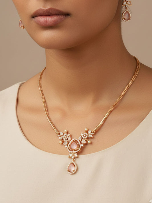 Blush Gold Crystal & Pearl Statement Necklace Set