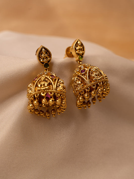 Antique Lakshmi Temple Jhumka Earrings – Gold Plated