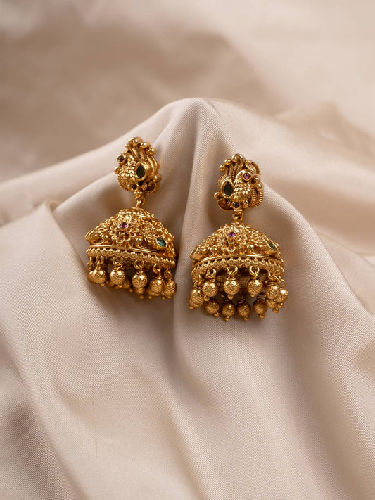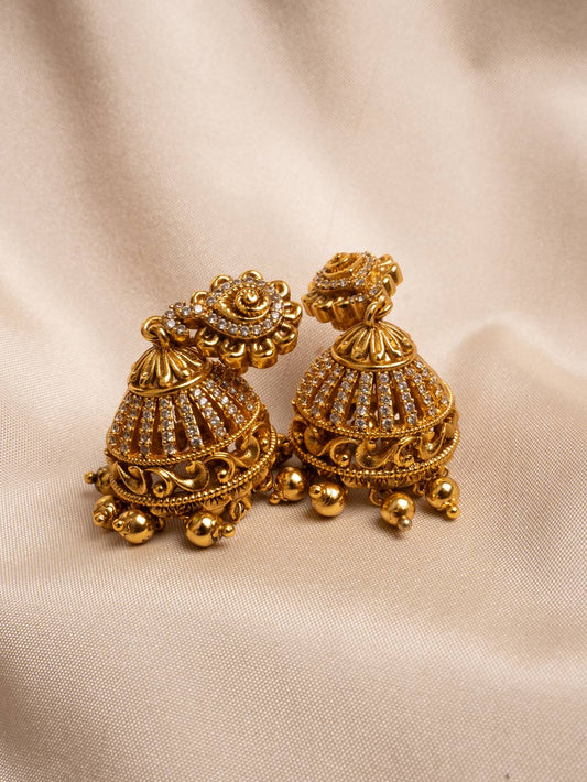 Elegant Jhumka Earrings with Traditional Gold Finish