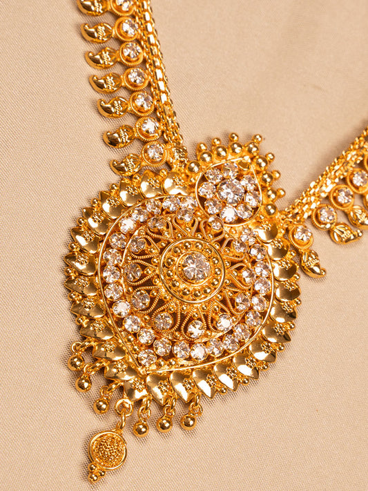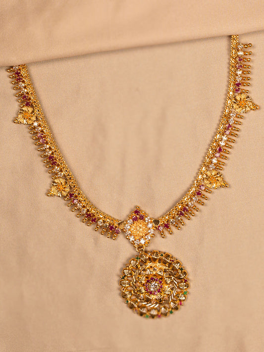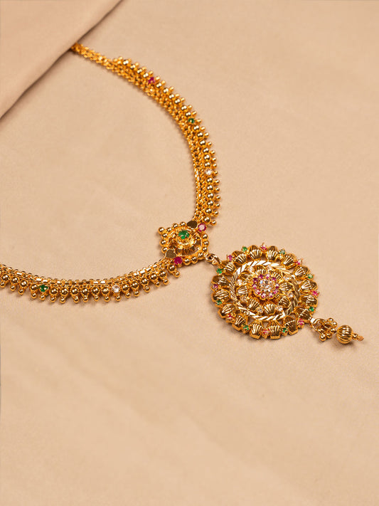 Heritage Gold Temple Necklace with Circular Floral Pendant