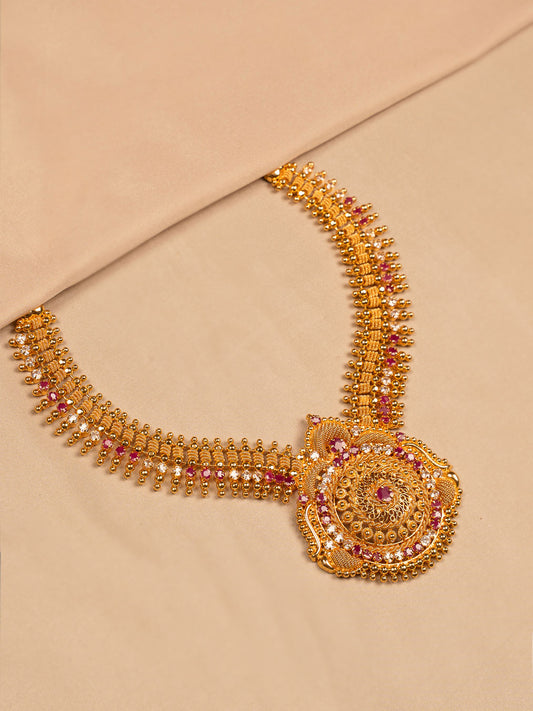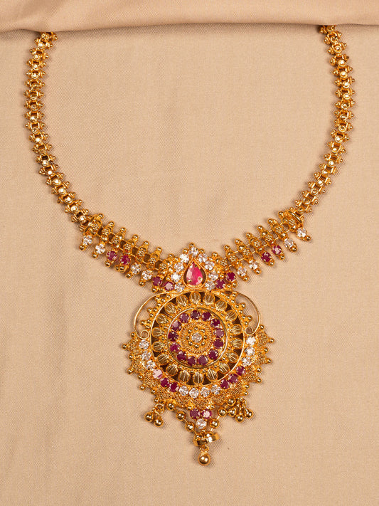 Royal Ruby-Studded Traditional Gold Necklace with Intricate Pendant