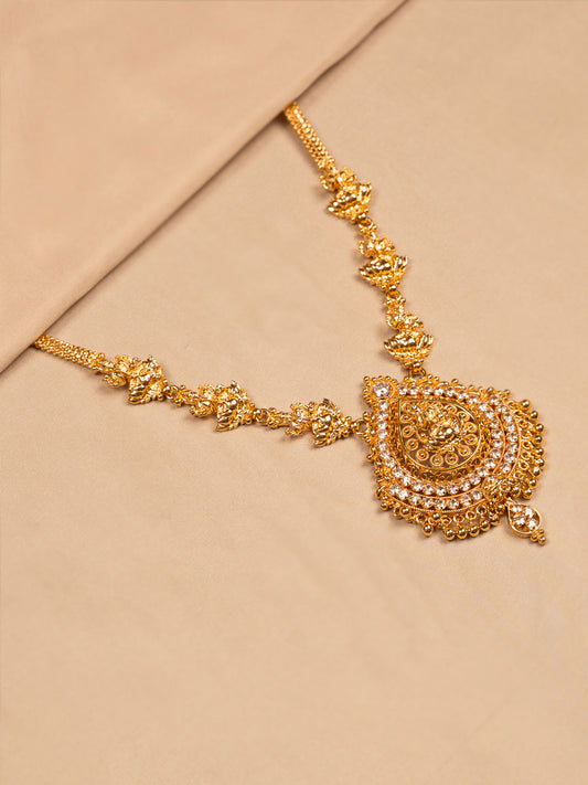 Temple-Inspired Antique Gold Necklace with Intricate Filigree Pendant