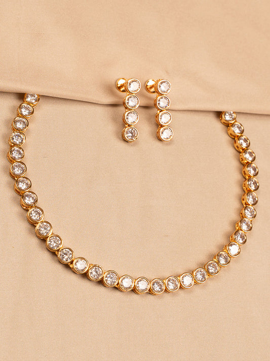 Elegant Solitaire CZ Necklace & Earrings Set with Gold Base