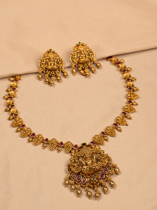 Goddess Lakshmi Temple Necklace with Ruby & CZ Detailing