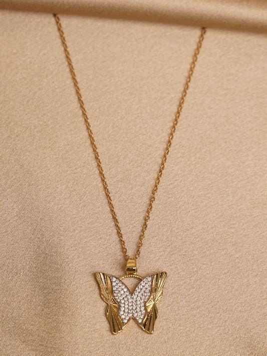 Crystal Wing Butterfly Pendant Necklace