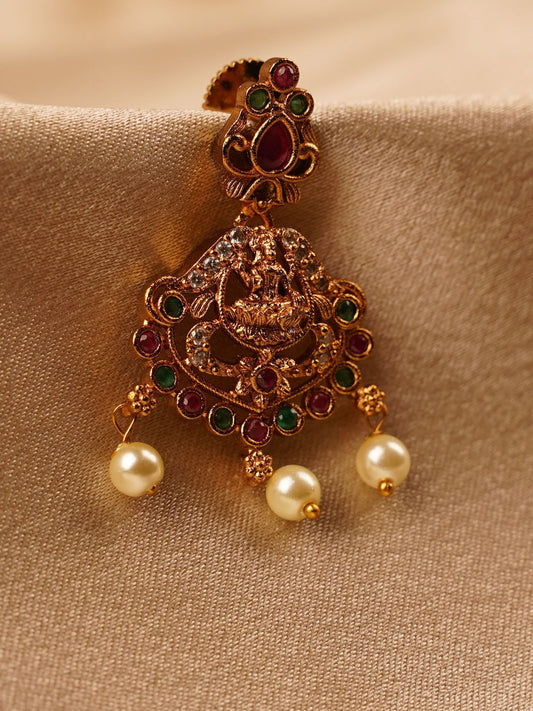 Lakshmi Navratna Pearl Temple Earrings