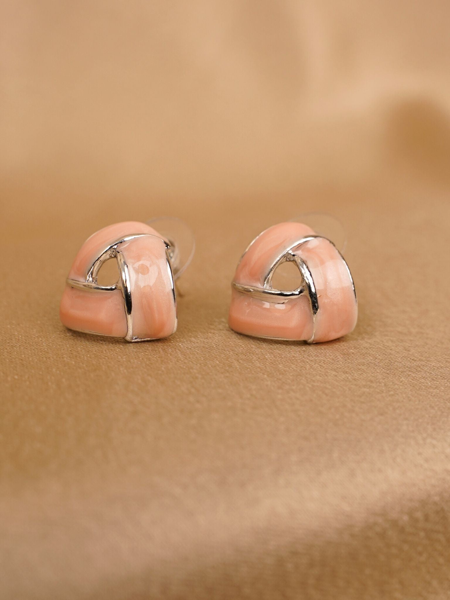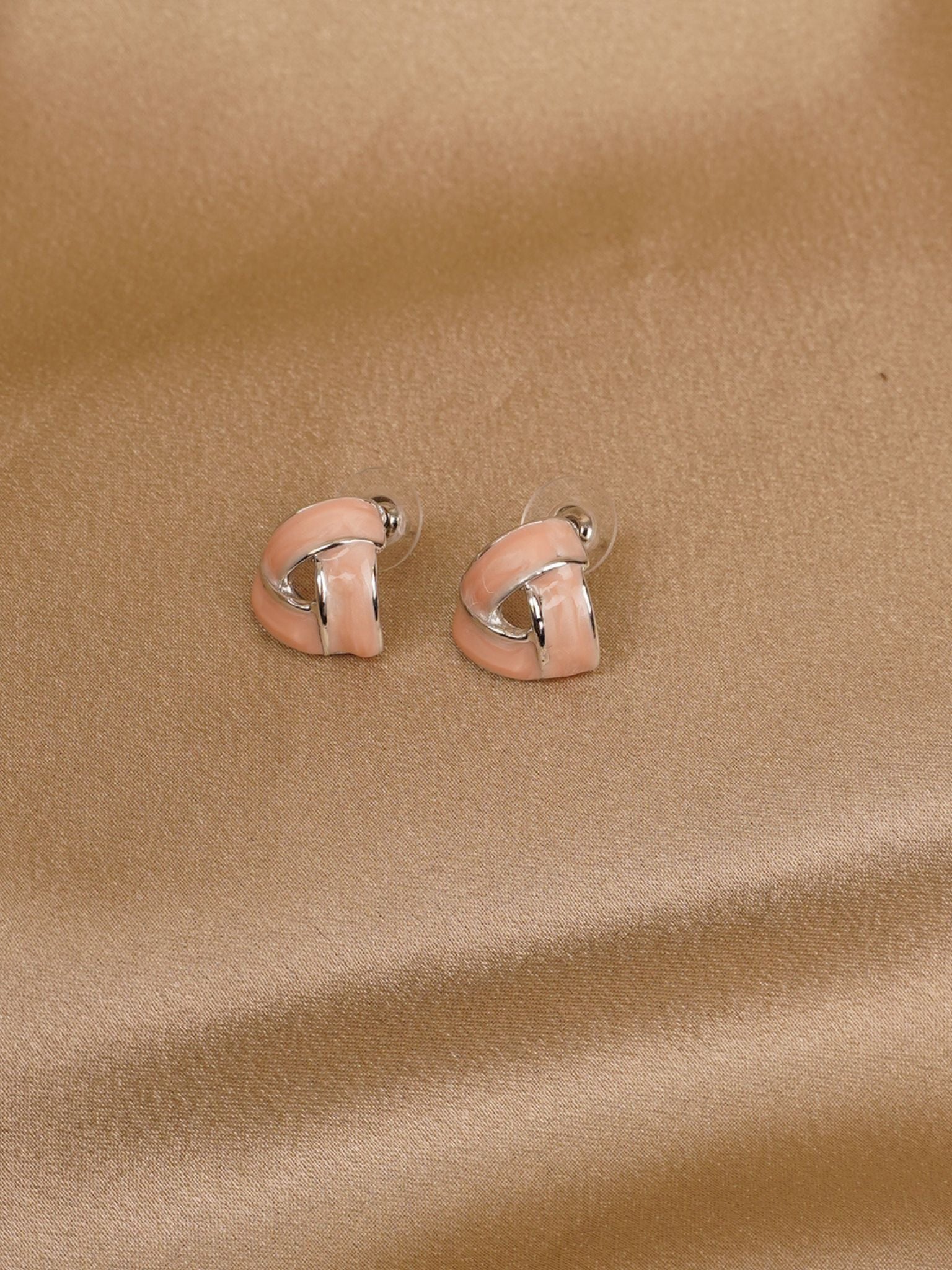 Soft blush enamel studs with a sculpted silver knot design. Modern, chic, and effortlessly elegant.