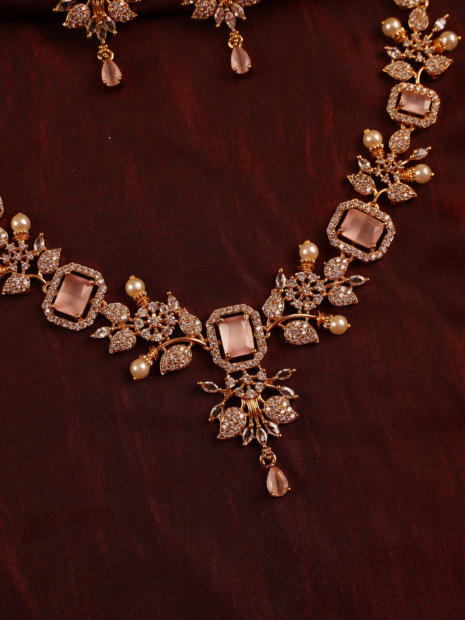 Elegant Gold & Pink Stone Bridal Jewelry Set