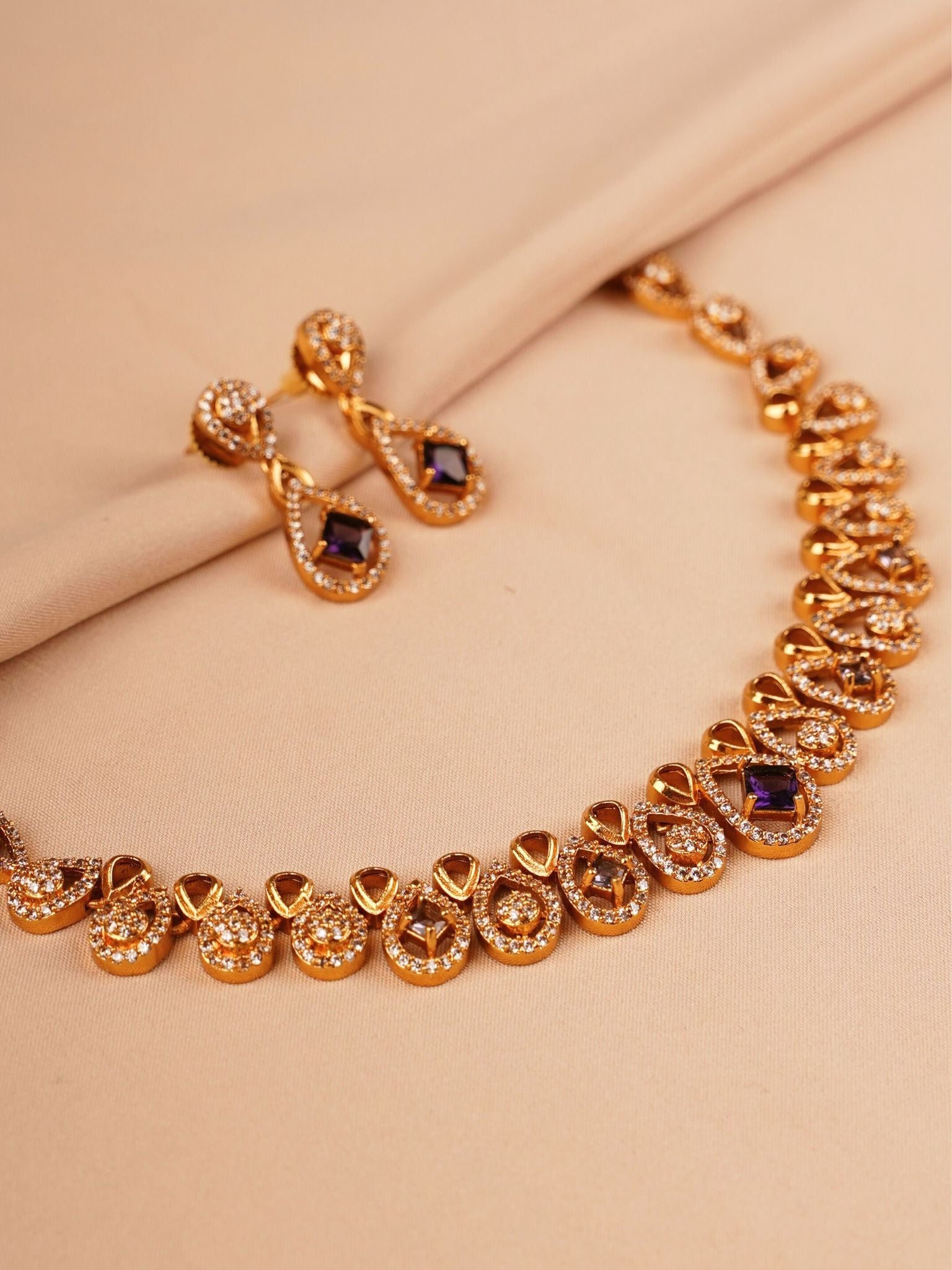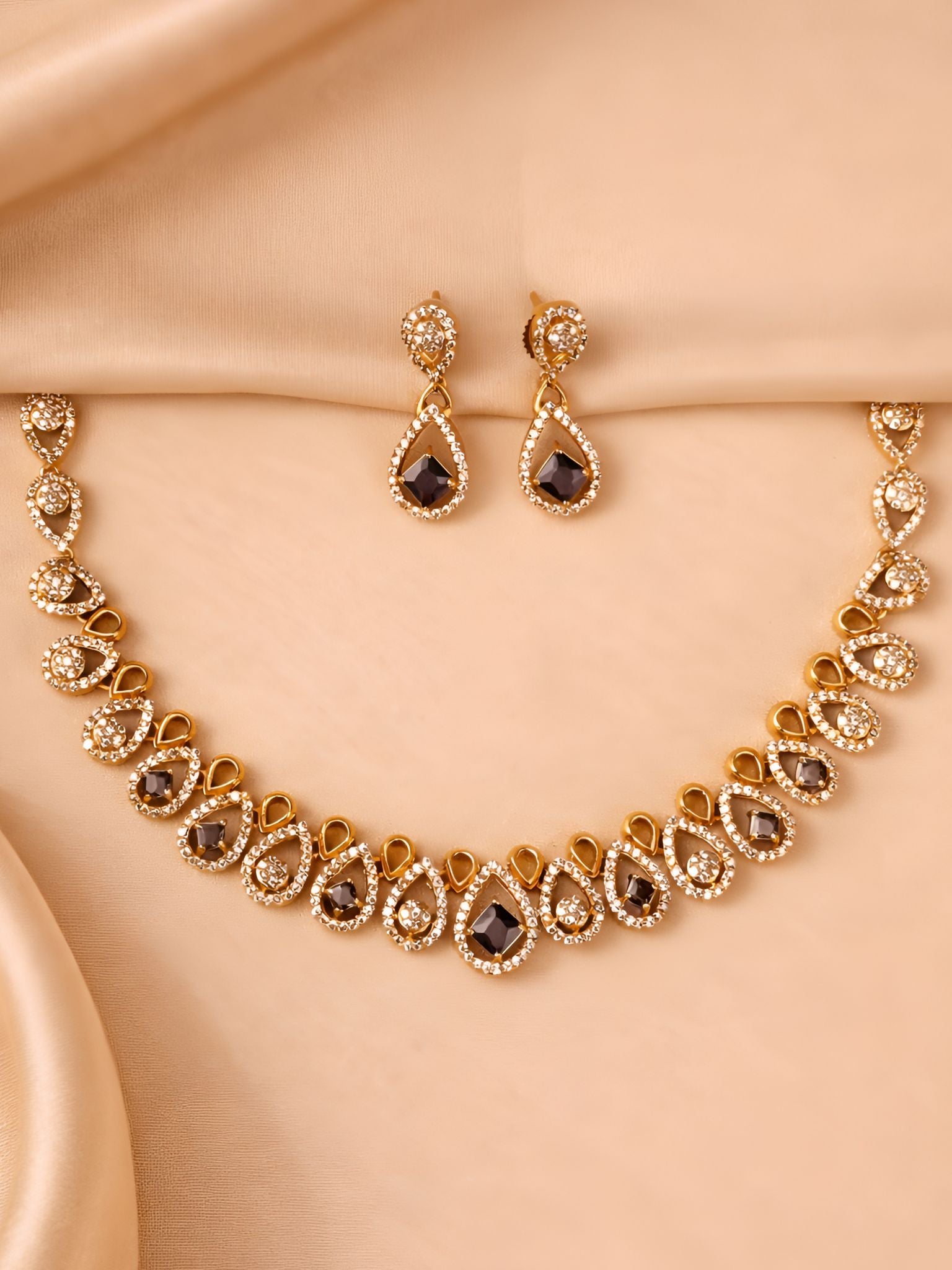 Contemporary Gold Cutwork Necklace Set with Crystal Accents