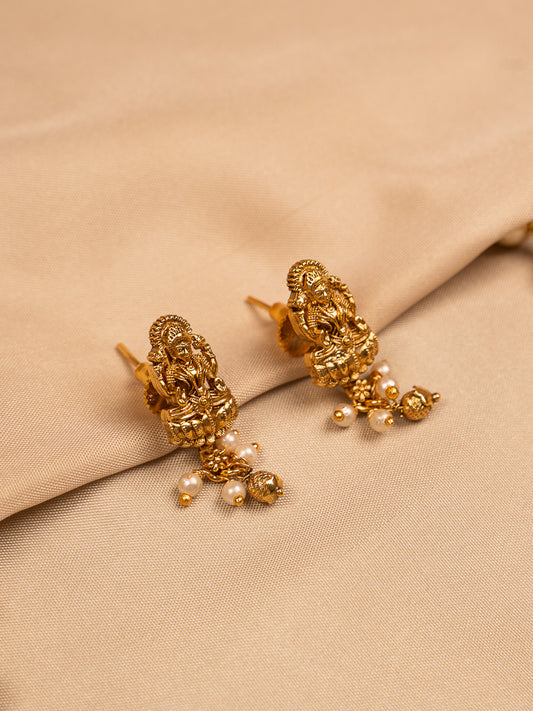 Antique Lakshmi Temple Jhumka Earrings – Gold Plated