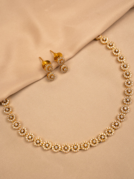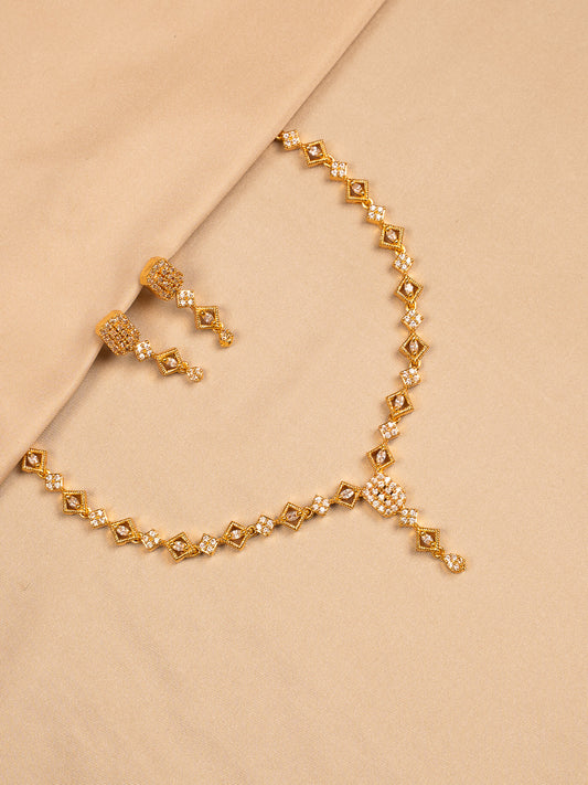 Gold Plated Geometric Necklace Set with American Diamond Accents