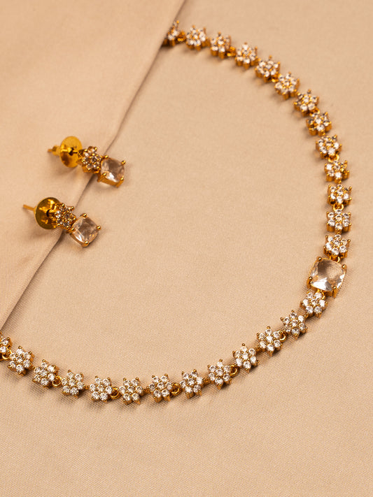 Classic Gold Crystal Floral Necklace Set