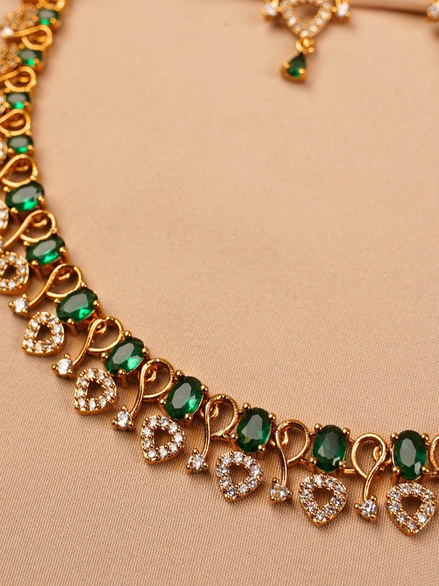 Designed with vibrant emerald-tone stones and heart-shaped crystalline charms, this piece adds a touch of grace to every traditional outfit.