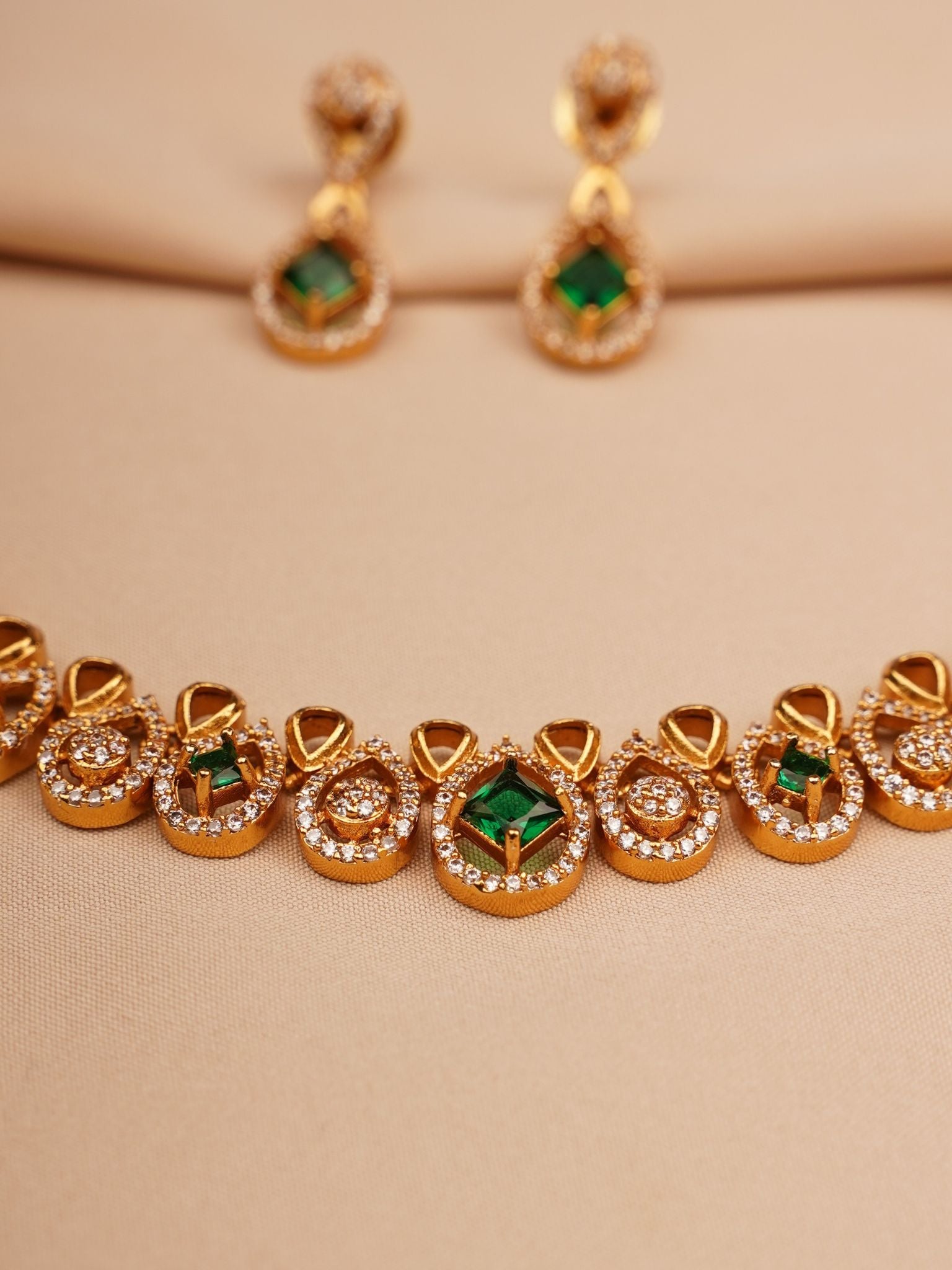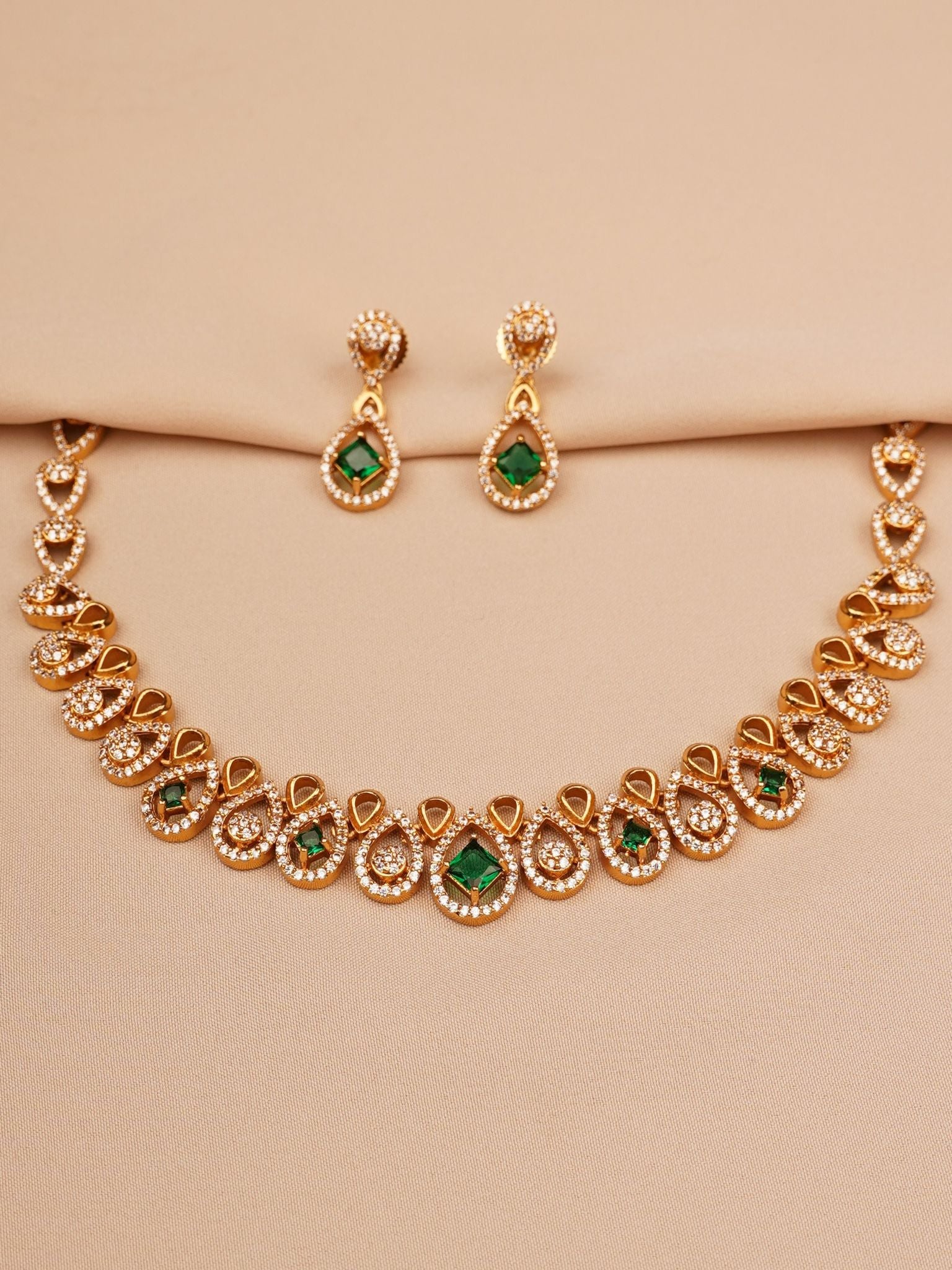 Discover elegance that never goes out of style with our Emerald Mirage Teardrop Necklace Set.