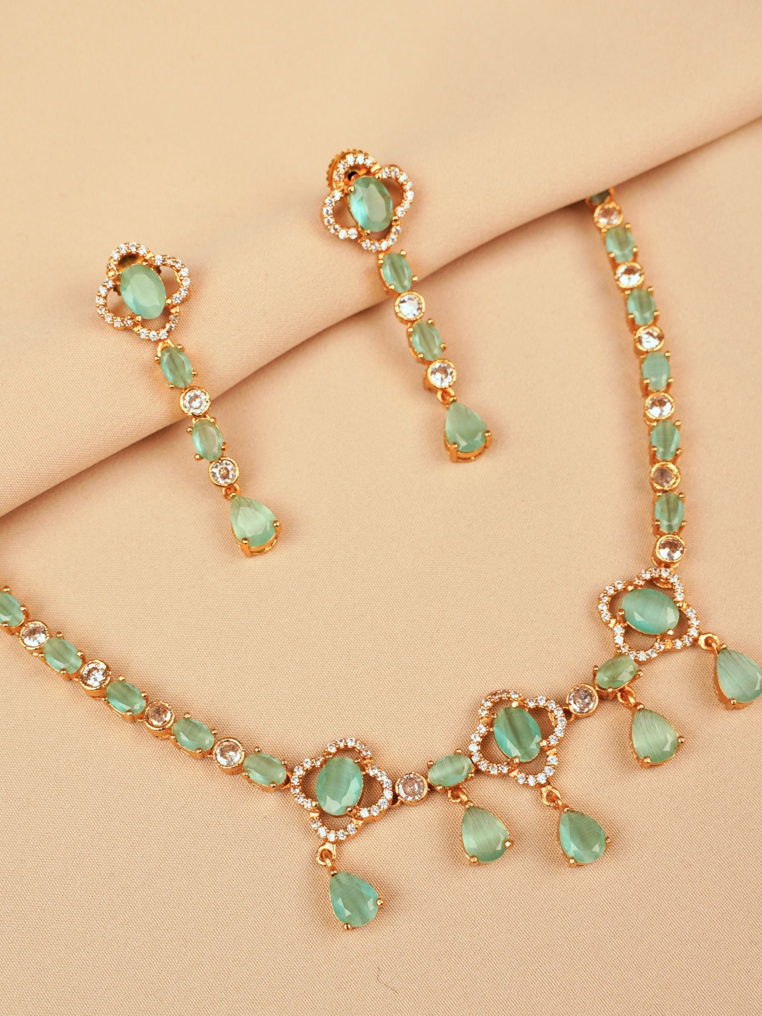 Light Green Stone Bridal Necklace Set