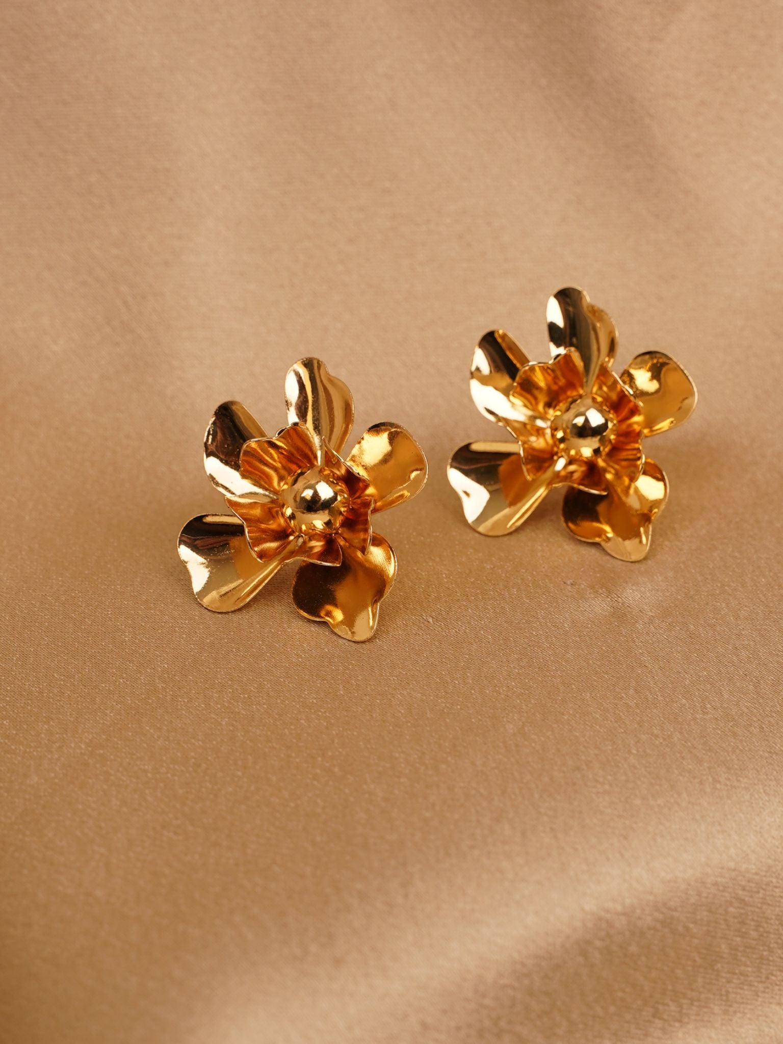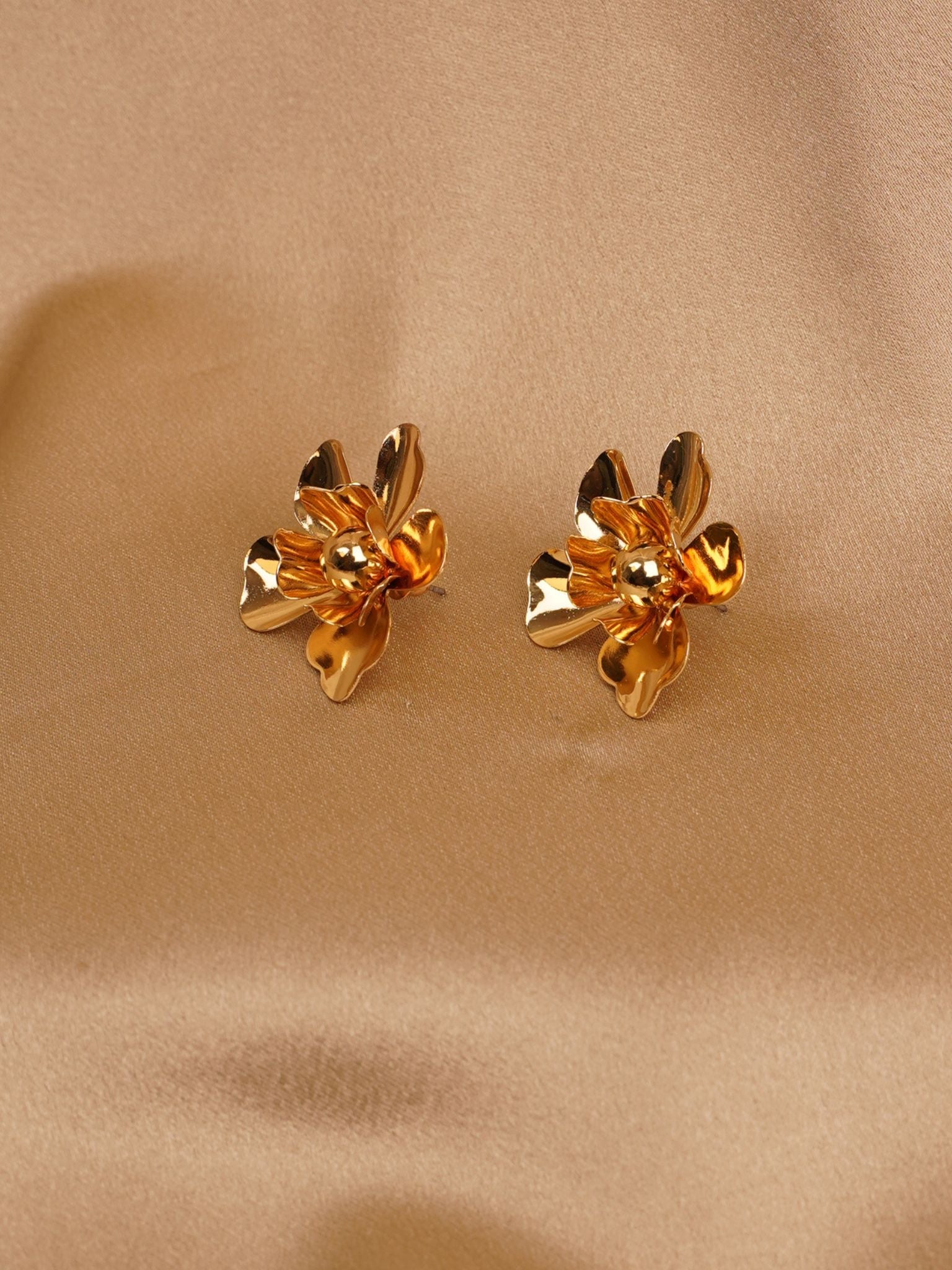 Golden Bloom Sculpted Stud Earrings