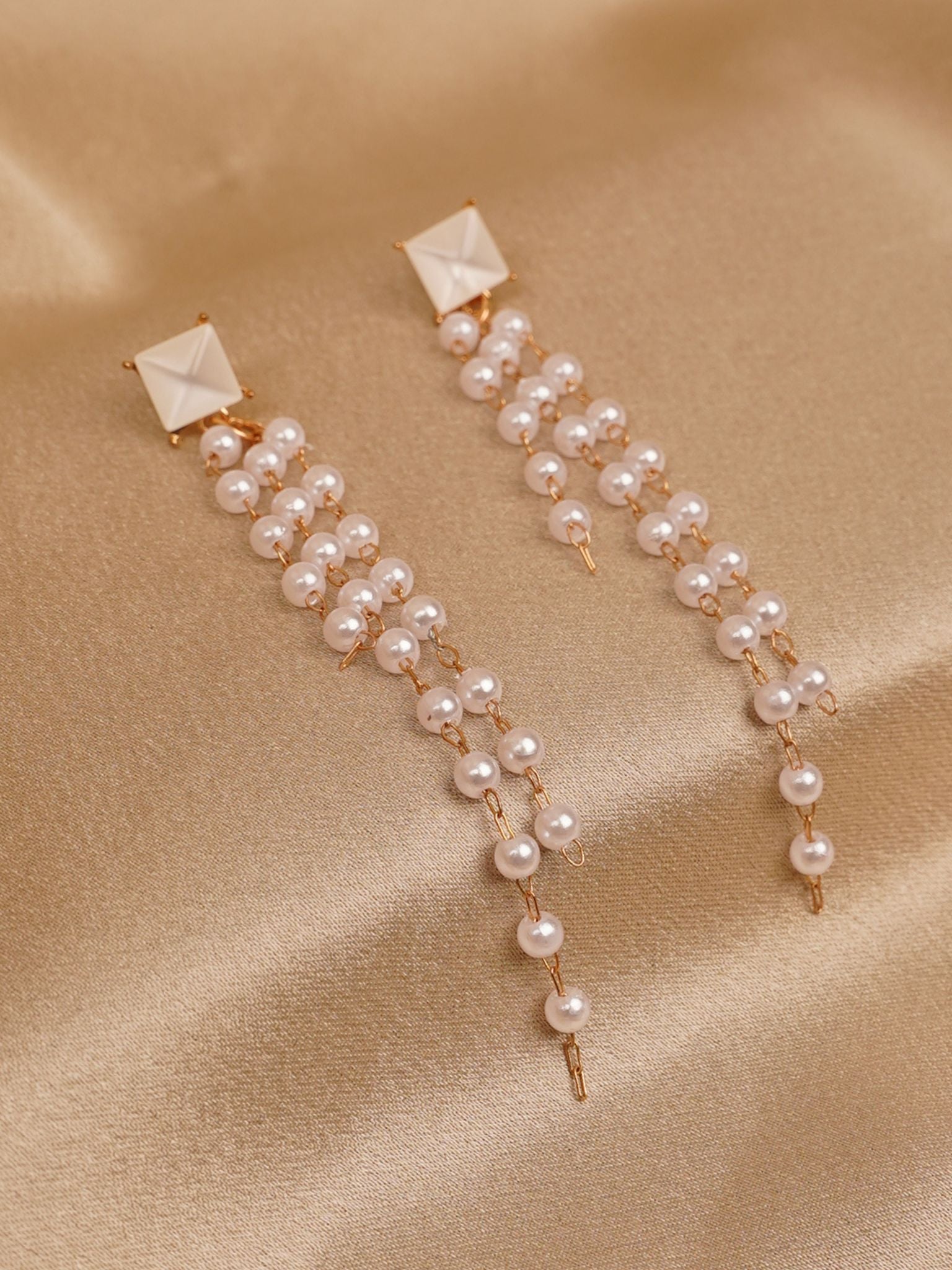 The cascading pearl strands create beautiful movement and elongate the silhouette, making them perfect for both modern and traditional styling. Lightweight yet striking, this pair adds refined charm to weddings, festive events, evening outings, or even elevated everyday looks.