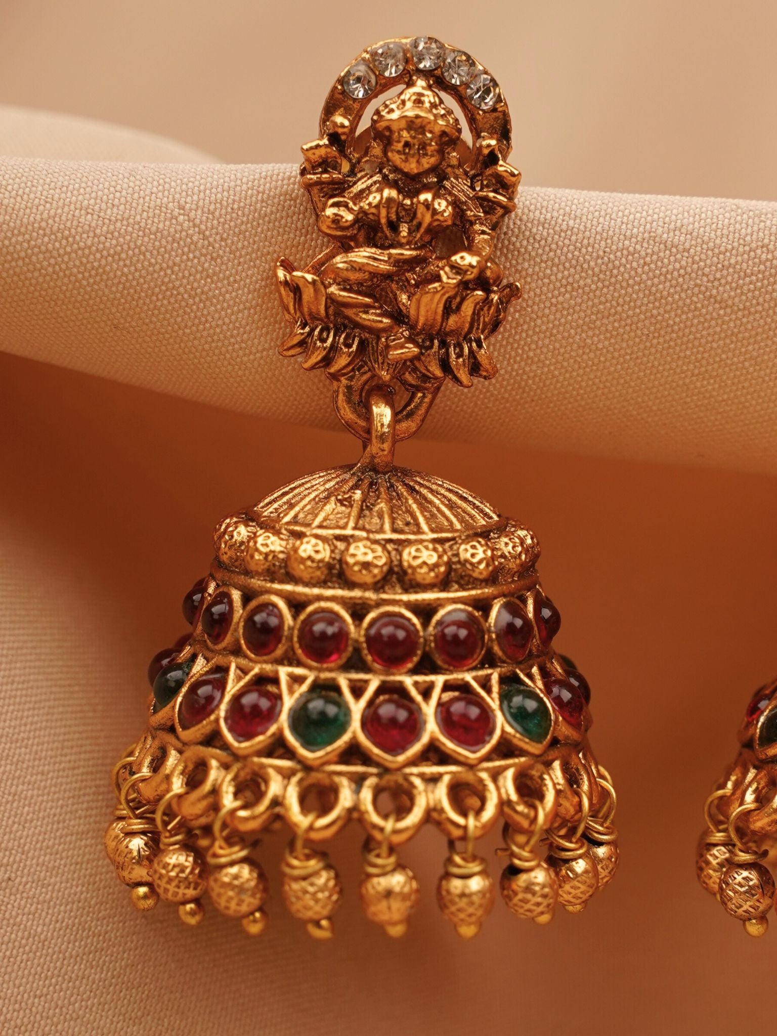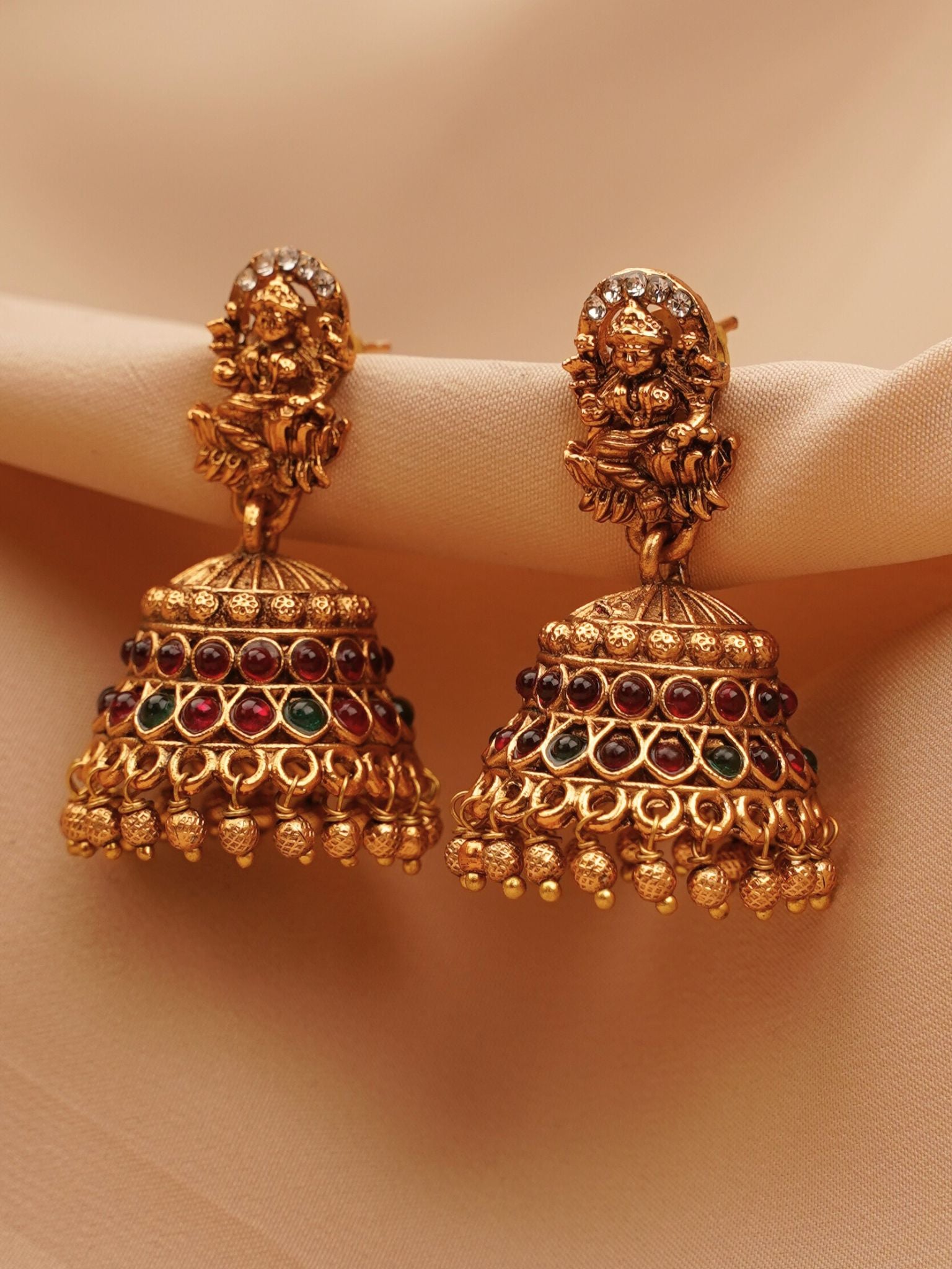 Lakshmi Temple Jhumkas with Ruby Stones