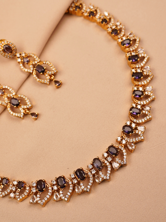 Purple Stone Gold Plated Necklace Set