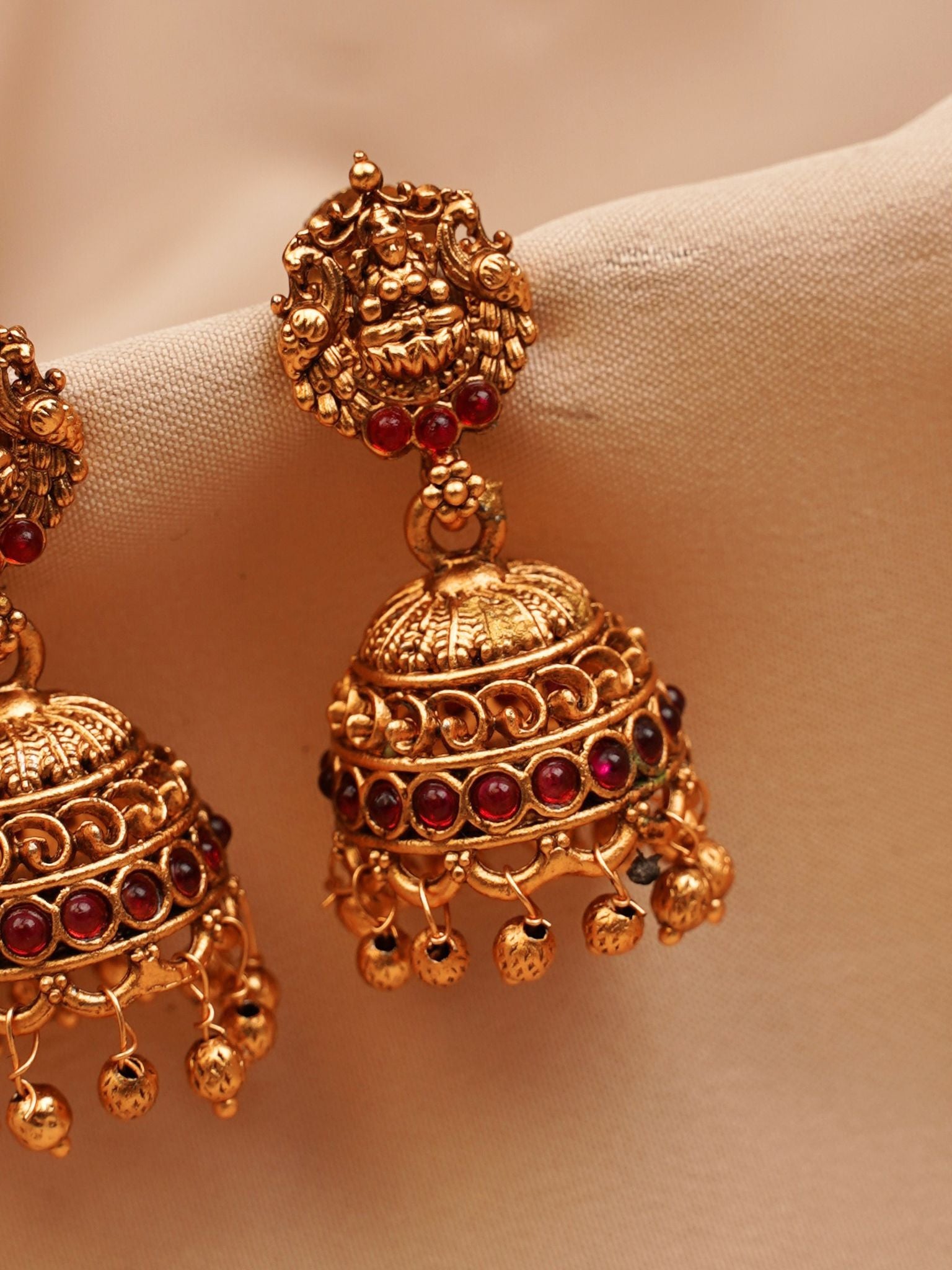 Lakshmi Temple Jhumkas with Ruby Stones