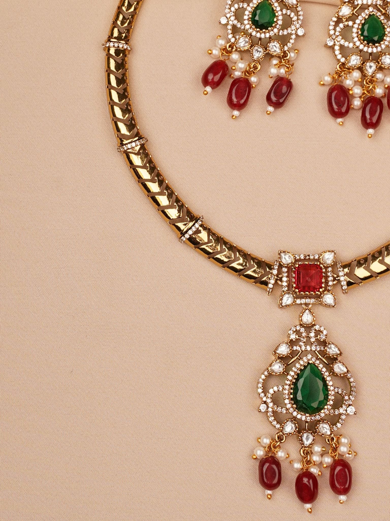 Ruby & Kundan Stone Gold Plated Necklace Set