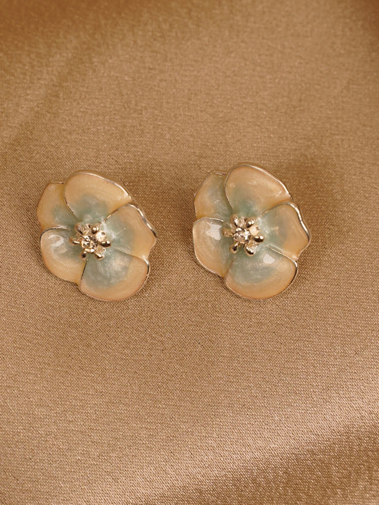 The floral silhouette is enhanced with a fine crystal cluster at the center, adding just the right amount of sparkle. The airy design makes this pair perfect for brunches, office wear, festive gatherings, and pastel-themed outfits.