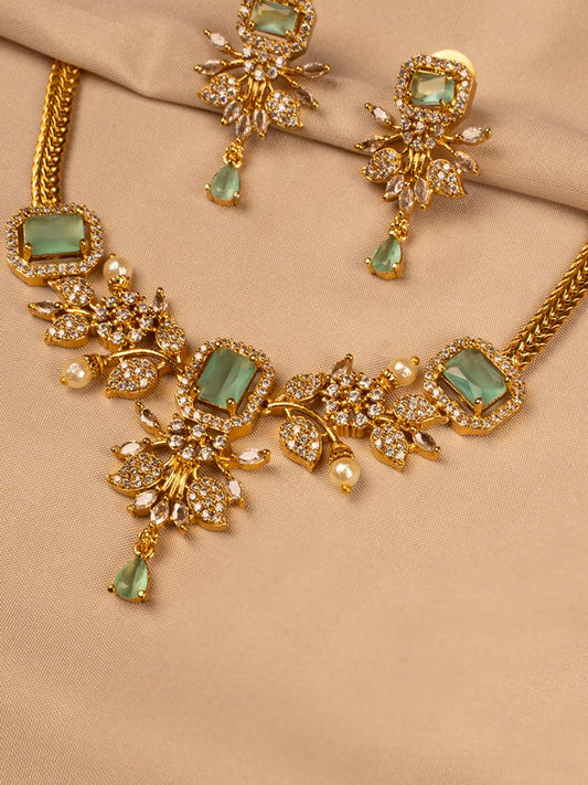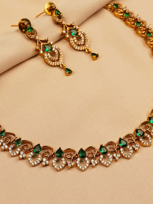 Elegant Gold-Plated Emerald Necklace Set with Earrings