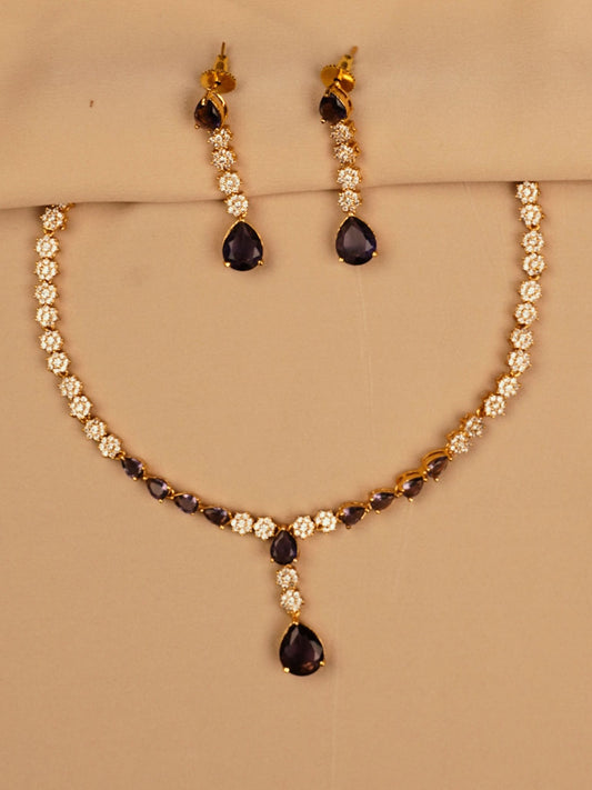 Purple and White Stone Necklace Set – Timeless & Graceful KC585