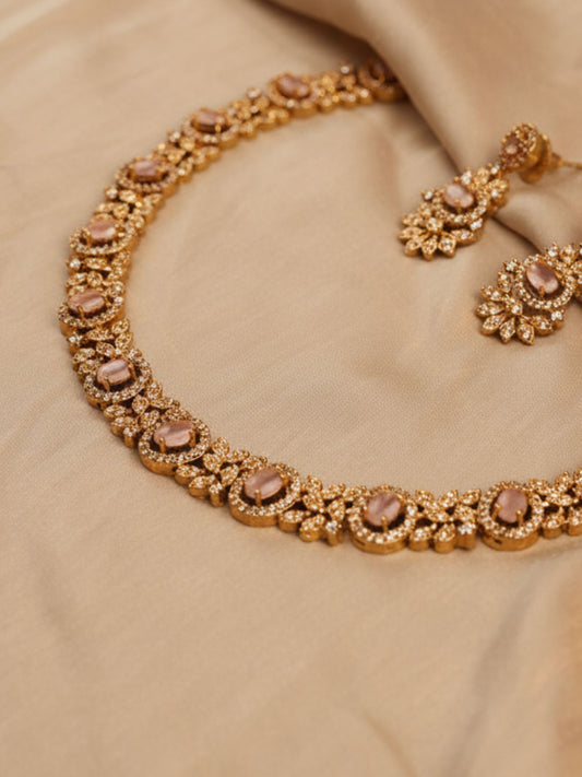 Elegant Rose Gold Necklace Set with Earrings