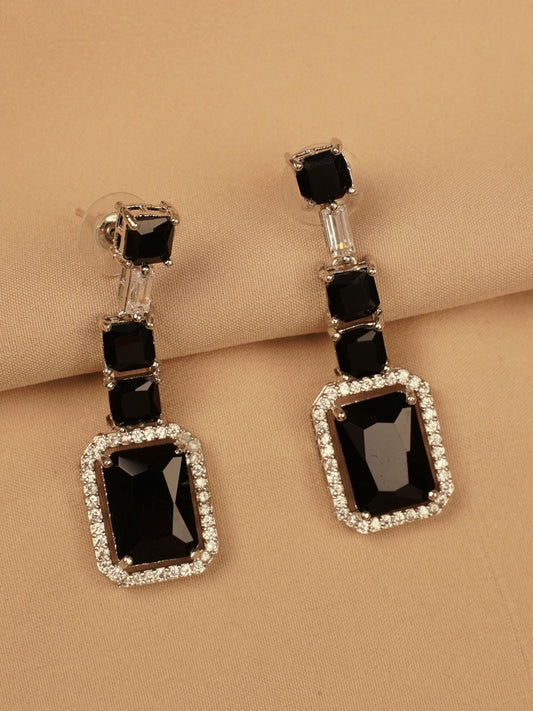 Silver-Plated Black Stone Necklace Set with Earrings