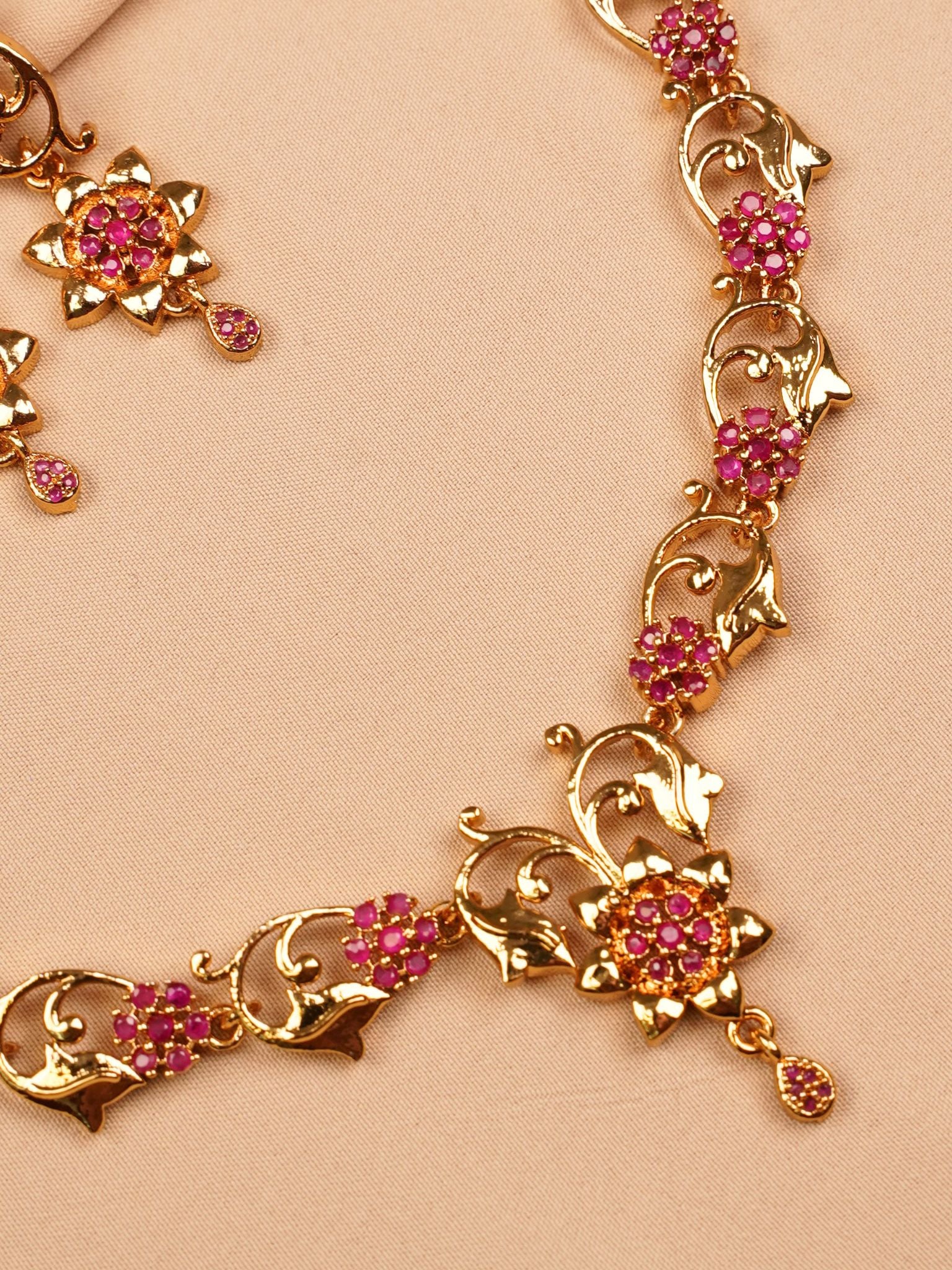 Ruby & Kundan Stone Gold Plated Necklace Set