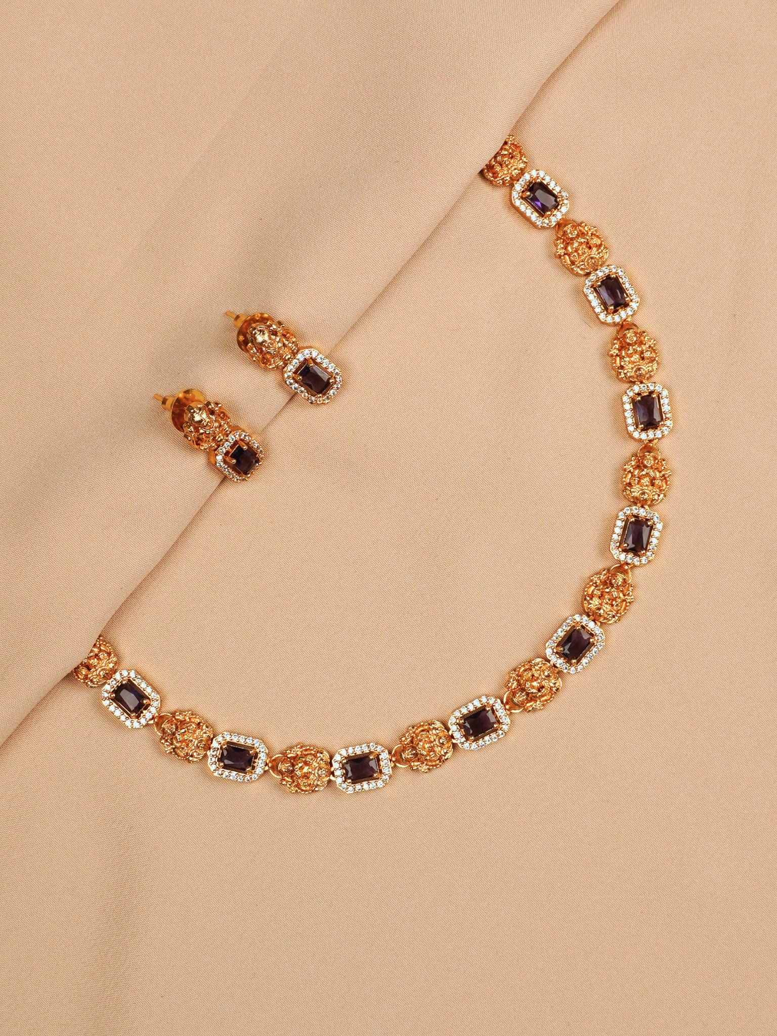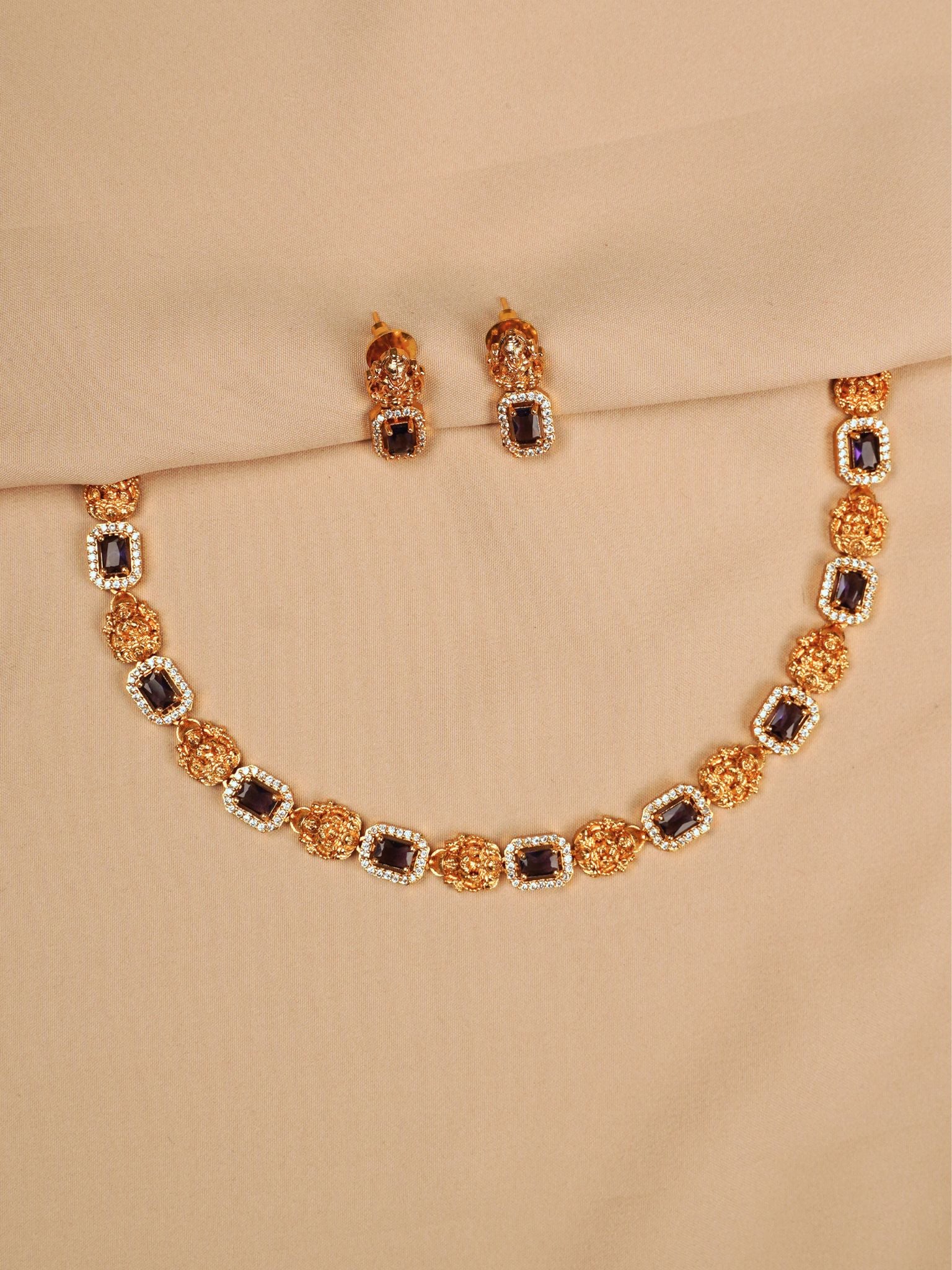 Royal Sapphire Blue Stone Necklace Set with Diamond Finish