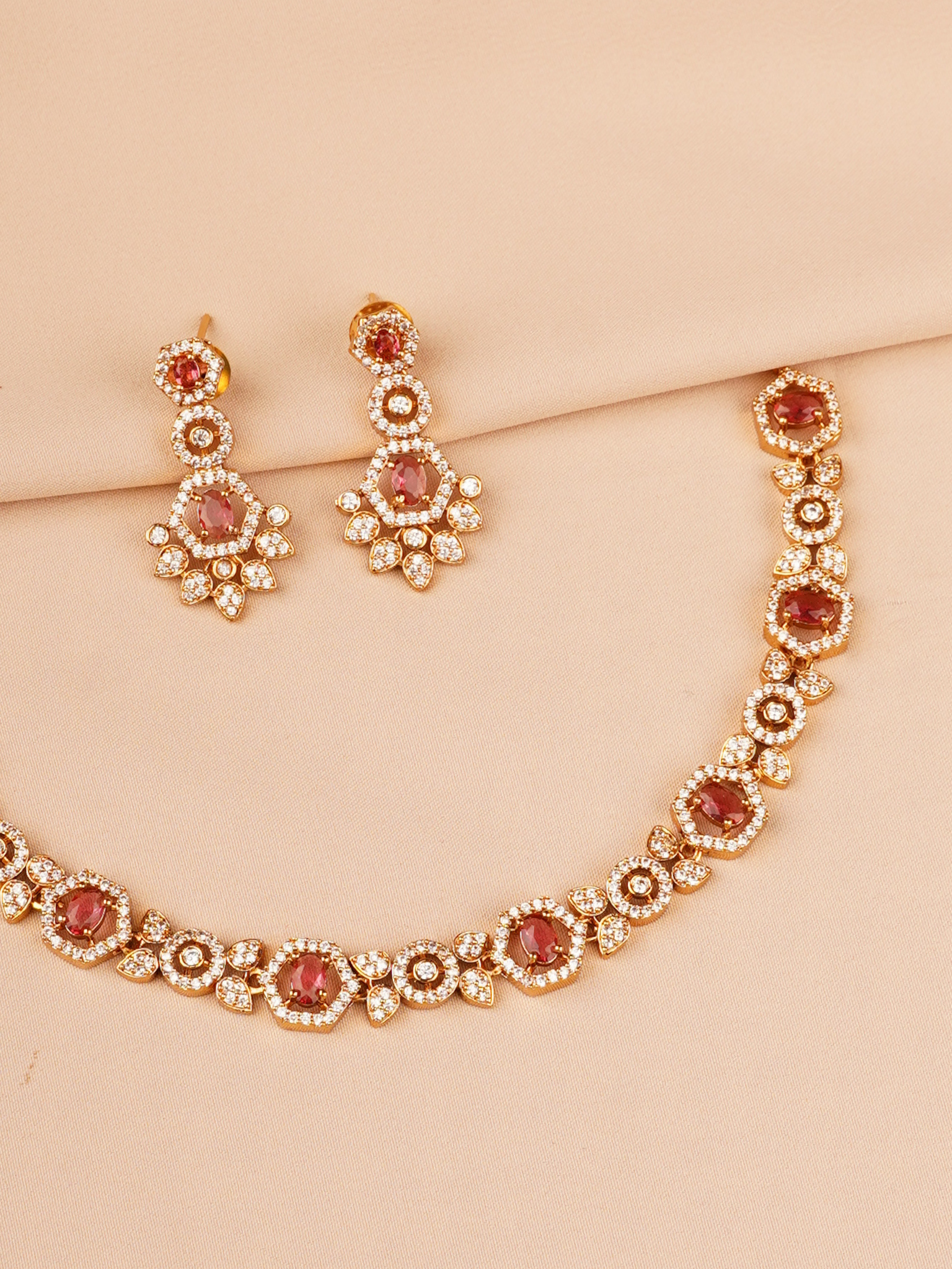 Contemporary Gold Cutwork Necklace Set with Crystal Accents