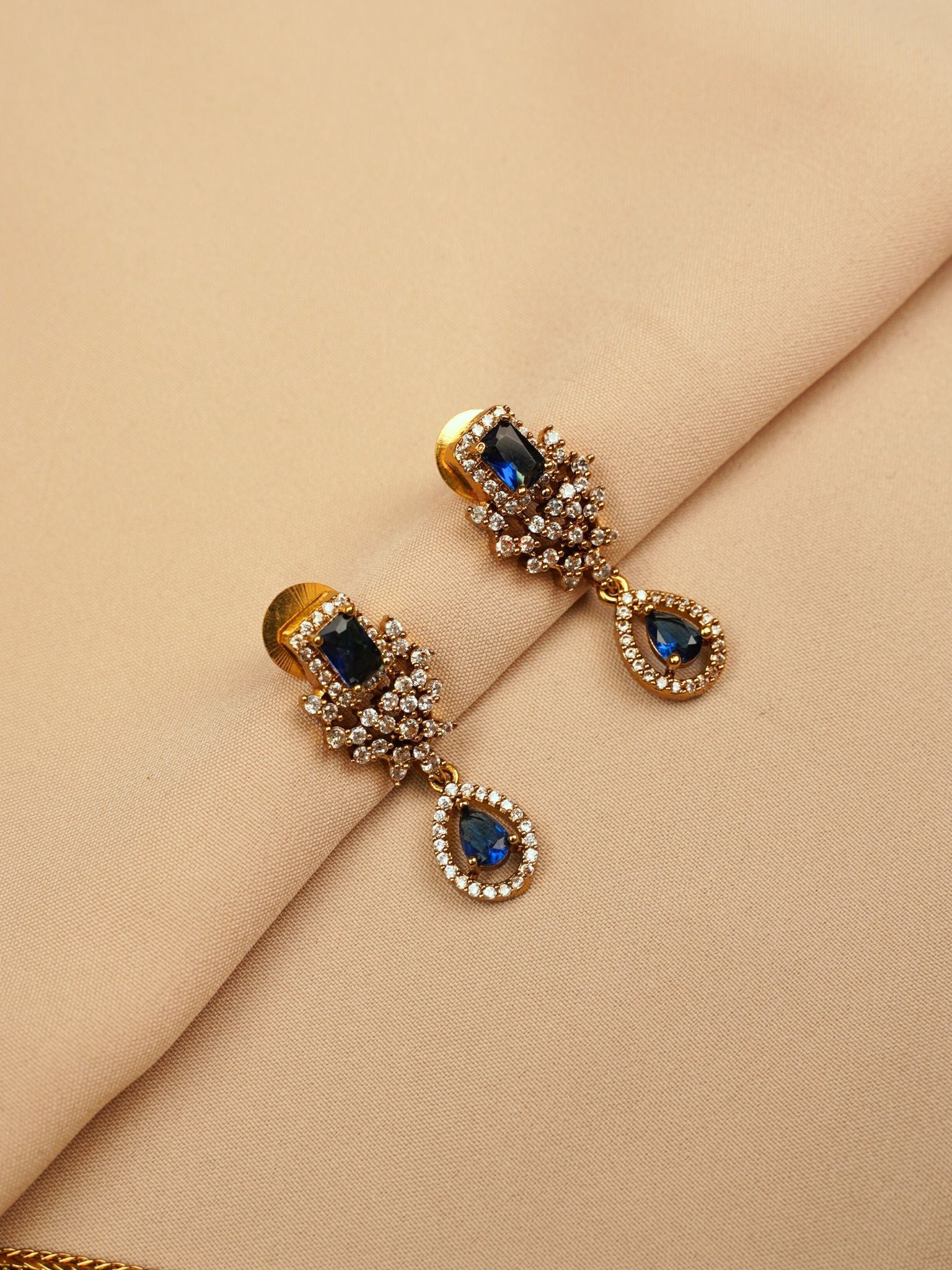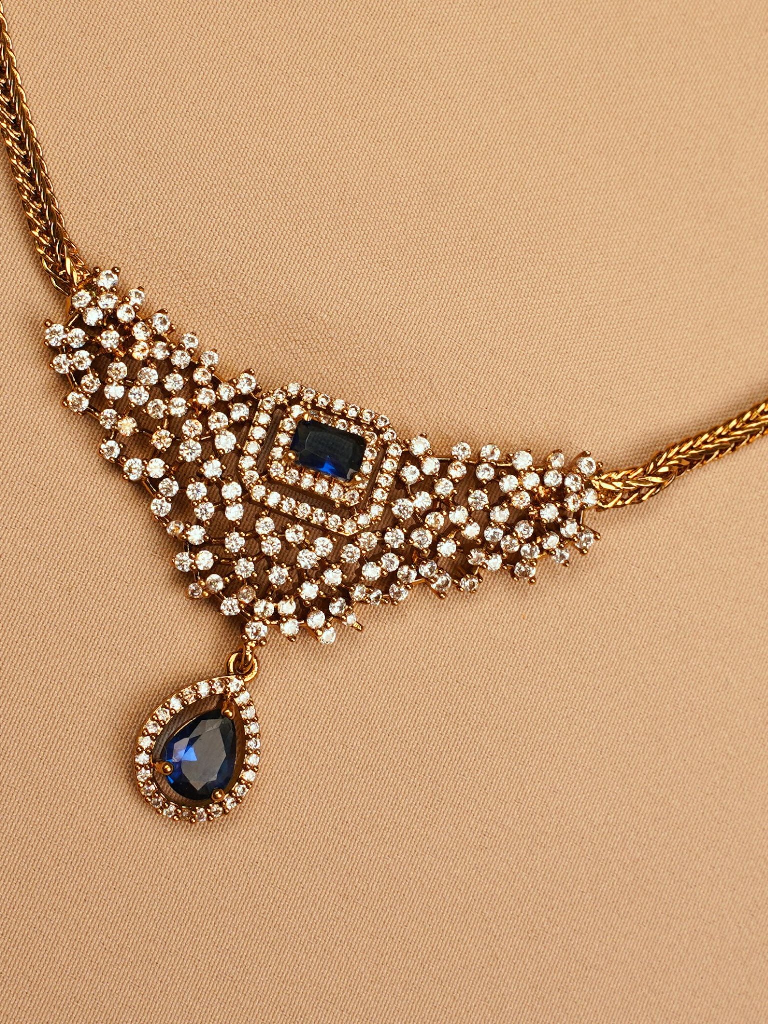 Royal Sapphire Blue Stone Necklace Set with Diamond Finish