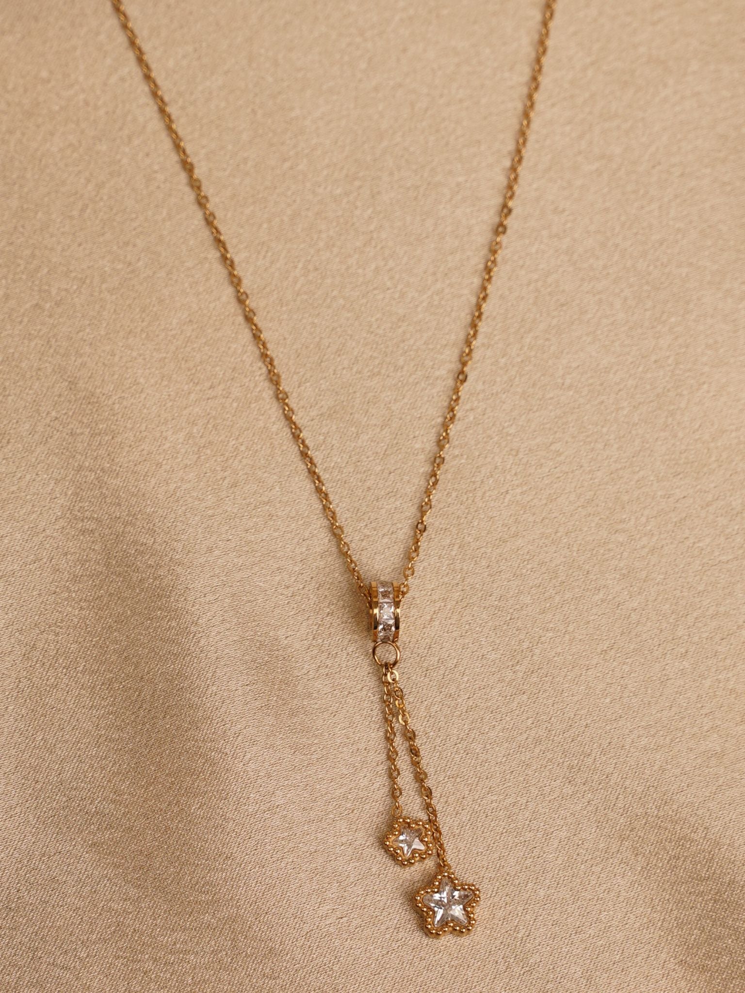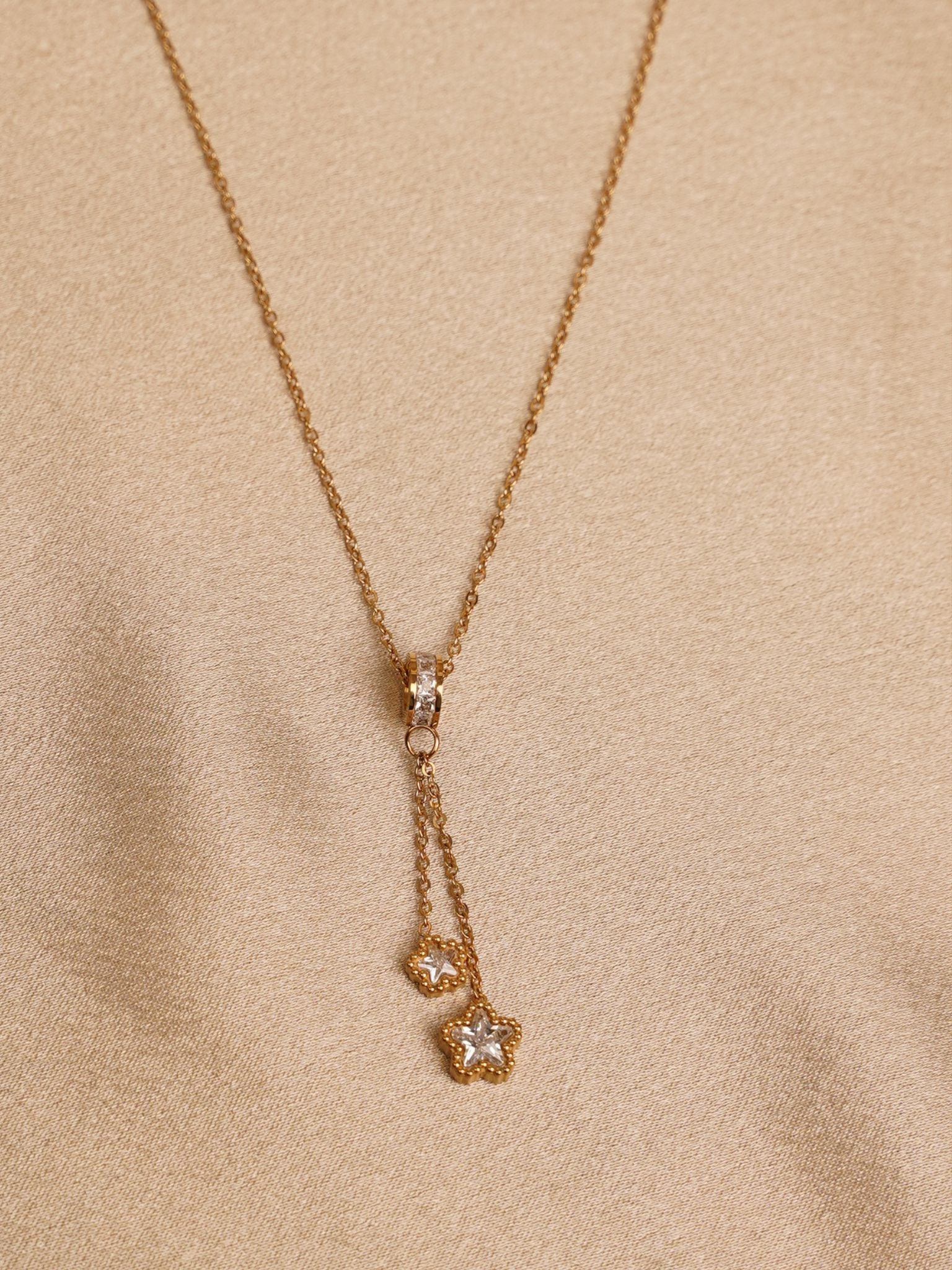 Twin Star Drop Pendant Necklace